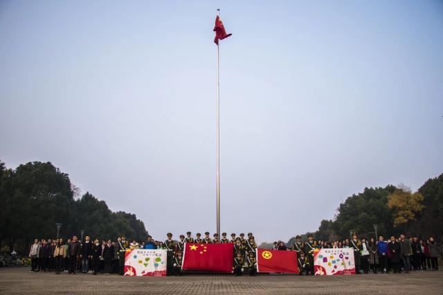 冬日的清晨透着寒意,清晨霜寒的露水还没有散毕,但这丝毫没有影响到老师和同学们的热情。早晨6点50分,全体成员已集合完毕。伴随着国旗护卫队铿锵有力的脚步声,升旗仪式于7点整正式开始。庄严的《义勇军进行曲》奏响,鲜艳的五星红旗冉冉升起,全体师生唱响国歌,望着国旗飘扬在东华上空,鲜红色闪耀在每一个人心里。