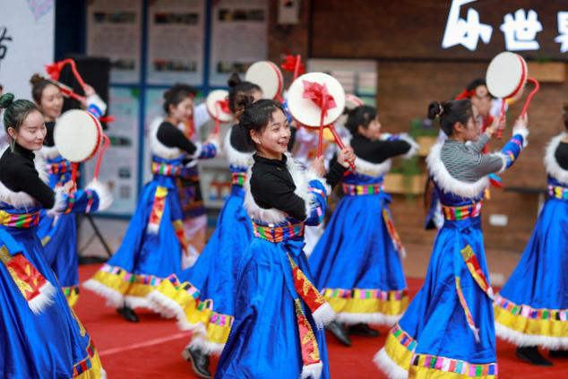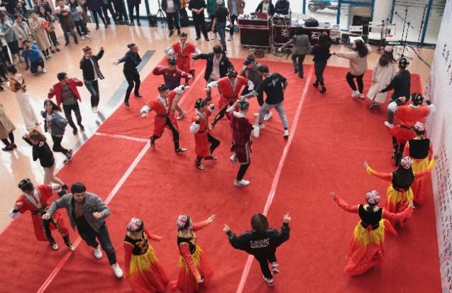 来自藏族、维吾尔族、哈萨克族、彝族等多民族的同学和少数民族教师代表倾力合作,倾情奉献,通过民族歌舞表演、民俗特色展示、文化互动体验等多种形式,向全校师生们展示了民族文化的魅力。粗旷豪放的藏族舞蹈,每一个鼓点都应和着民族特有的艺术色彩,闻歌而舞,舞中有歌;热情洋溢的维吾尔族歌舞则像是来自西域的精灵,每一个悦动都带着葡萄美酒的清甜芬芳;悠扬婉转的冬不拉带着哈萨克民族的传说赢得了所有听众的耳朵;彝族的歌曲也有着别样的豪迈,仿佛策马而来的英雄从山间纵身而下;蒙古族教师的舞蹈《美丽的草原我的家》为大家展现了广阔的草原美景。与此同时,汉族、土家族、朝鲜族、回族、蒙古族、满族、壮族等各民族的同学们都为大家带来了别具一格的民族特色表演。表演中,当《我和我的祖国》的旋律在人群中响起,一股由内而外的民族自豪感,实现中华民族伟大复兴的历史责任感激荡在大家胸怀。