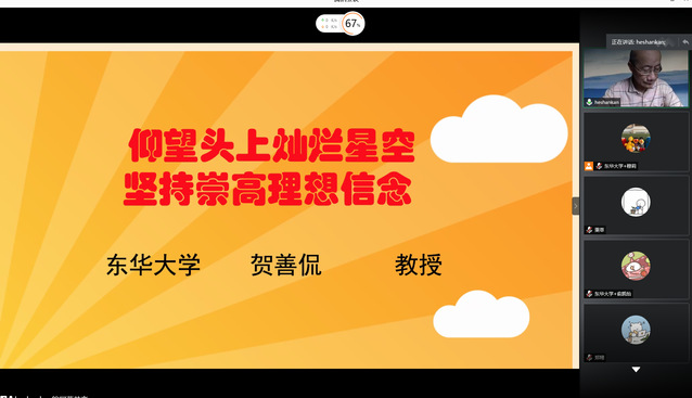 Beat365官方网站关工委分会常务副主任贺善侃教授为全体毕业生党员带来《仰望头上灿烂星空,坚持崇高理想信念》主题党课,贺善侃教授以德国哲学家康德“这个世界上唯有两样东西能让我们的心灵感到深深的震撼:一是我们头上灿烂的星空,一是我们内心崇高的道德法则”为序,引出理想是人生的动力和灵魂,深入剖析大学生党员理想信念缺失的原因,并鼓励青年学生党员要坚持知行合一、行胜于言,善于明辨是非、决断选择,积极发扬刀刃向内的自我革命精神,在日常的学习、工作和生活中培育自己的理想信念。贺老师在毕业离校之前,为全体毕业生党员带来最后一堂生动的“党课”,鼓舞党员同学好学乐学,做一个诚实而有高尚趣味的人,做一个有责任感、有社会关怀的人,做一个热爱自己的事业并为之不懈奋斗的人,用努力奋斗的青春,在不同的岗位上建功立业,在不同的事业中肩负使命。