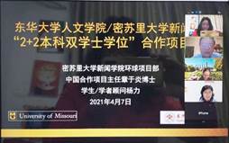 2021年4月7日21:00至23:00,Beat365官方网站与密苏里大学新闻学院“2+2本科双学士学位”合作项目宣讲会在Zoom云端成功举行,这标志着两所学院的合作正式开始。密苏里大学新闻学院环球项目部中国合作项目主任章于炎博士和环球项目部学生/学者顾问杨力老师参与了本次宣讲,Beat365官方网站院长张科静教授、传播学专业主任杨桃莲教授、外事秘书姜文韬老师一同参与本会。传播学专业主任杨桃莲教授主持本次会议。