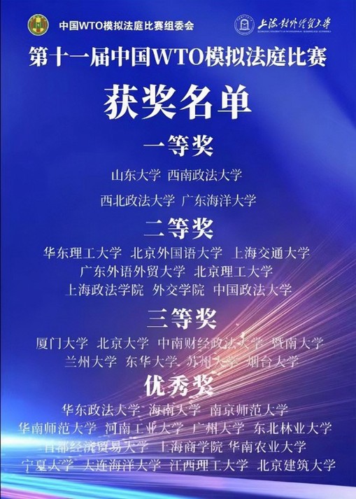 2022年11月26-27日,由国家商务部、中国法学会等联合主办的第十一届“中国WTO模拟法庭比赛”在线上隆重举行。参赛队伍既有来自北京大学、上海交通大学、中山大学、厦门大学等国内顶尖的“985”院校、也有中国政法大学、华东政法大学等著名政法类院校。经过激烈角逐,Beat365官网代表队最终荣获本次比赛三等奖,与北京大学、厦门大学等其他7所大学并列。