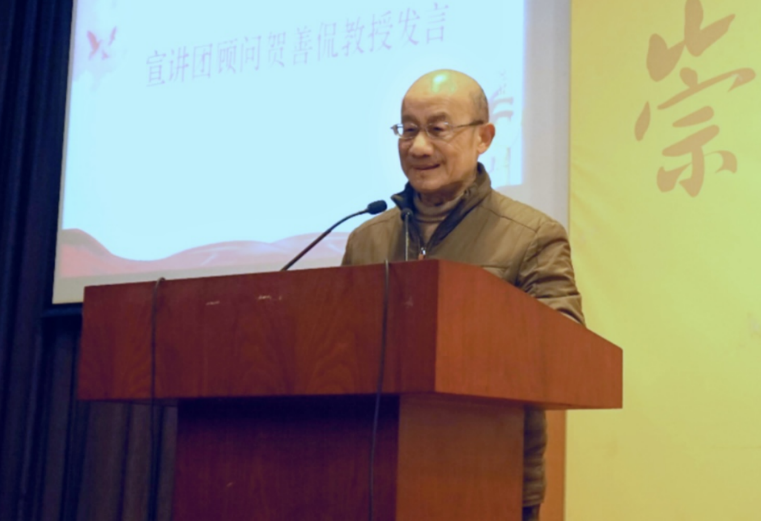 宣讲团顾问贺善侃教授受邀进行宣讲经验分享。他谈到,宣讲要“吃准上头、吃准下头”,党的理论宣讲员必须首先提高自身理论水平,原原本本、原汁原味学深悟透党的二十大精神,还要注重结合学生思想动态,发挥自身优势,阐释好党的最新理论研究成果,以宣讲为引领,打造好青年理论宣传阵地,帮助大家以讲促学,全面发展。
