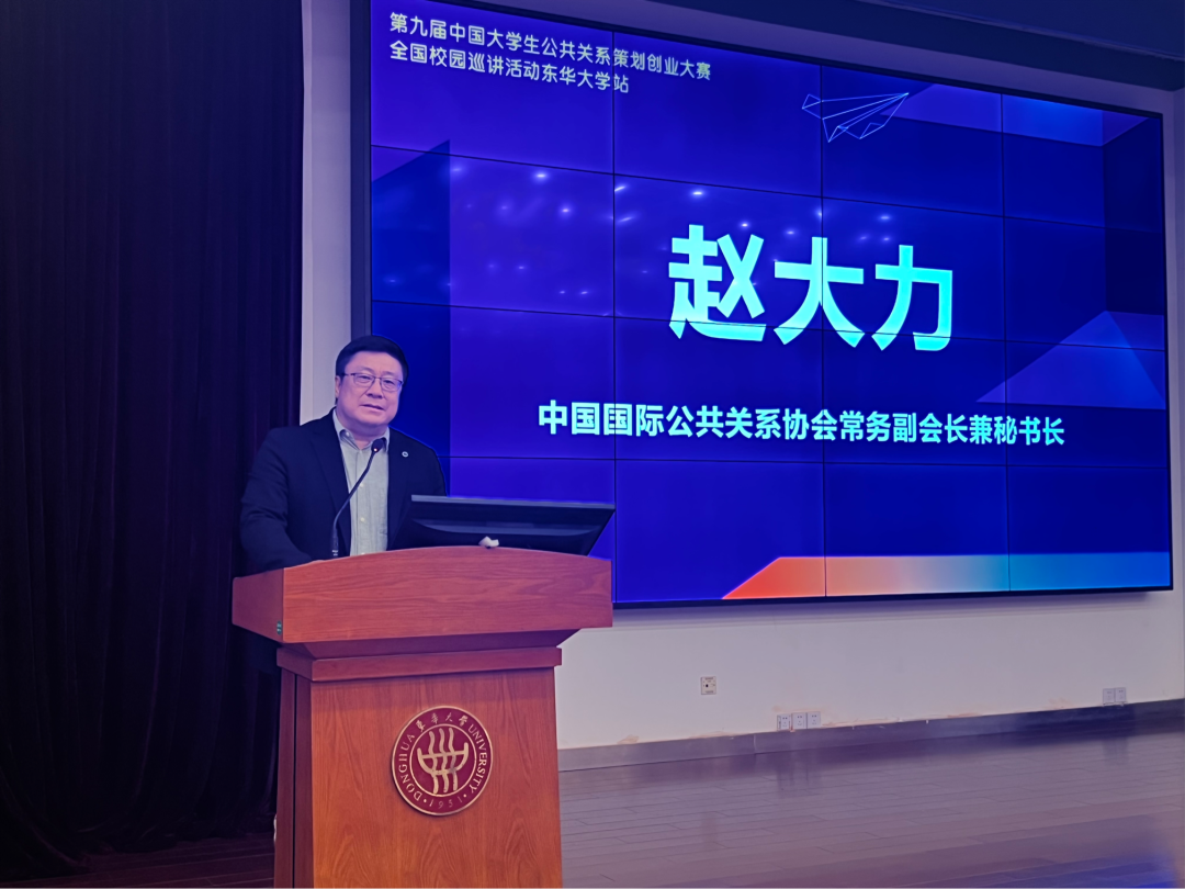 赵大力在致辞中对Beat365官方网站近几届参赛所取得的优异成绩给予高度肯定,他认为这与Beat365官方网站公共关系教育的高水准以及独有的教学特色密不可分。赵会长用本届大赛主题内容勉励参赛的学生,他希望同学们策划一个高质量的方案,借此开拓一个新的发展领域和空间,更好地走向未来、走向职场、走向实践,并预祝东华学子在本届大赛中取得更优异的成绩。