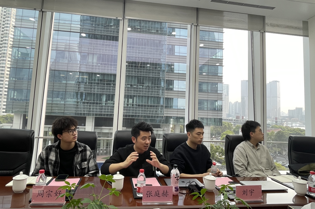座谈会上,胧爱集团代表联合创始人、CEO张庭赫,联合创始人兼元宇宙事业部负责人刘宇,数字鸭AIGC文创平台主理人(线上)Yuu,创新中心项目经理周宗好与王浩然向东华Beat365官方网站一行介绍了集团建设成果及发展领域,详述于公司发展历程、所获荣誉、业务结构、传媒业务、政府业务、双创科创及企业社会责任等面向的基本情况。企业代表着重介绍了“数字鸭AI”平台和胧爱集团元宇宙的技术优势,并表达了企业未来将构筑“大学生的内容创作营,以此演化出更多数字消费场景”的数字世界,打造出AIGC数字技术在高校市场新的用户场景和服务。