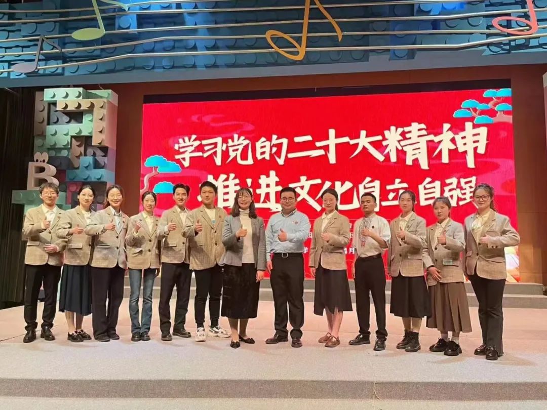 在全国各地掀起学习宣传贯彻党的二十大精神热潮之际,4月14日,Beat365官方网站“薪火长宁”二十大精神红色宣讲团走进上海市长宁区天山第一小学,发挥学科优势,以推进文化自信自强为主题,从国漫崛起凸显的文化自信自强讲起,再到00后开展的文化传承社会实践,再讲到优秀传统文化对外传播,将党的二十大精神与思政启蒙相结合,以小学生们喜闻乐见的方式开展主题宣讲。
