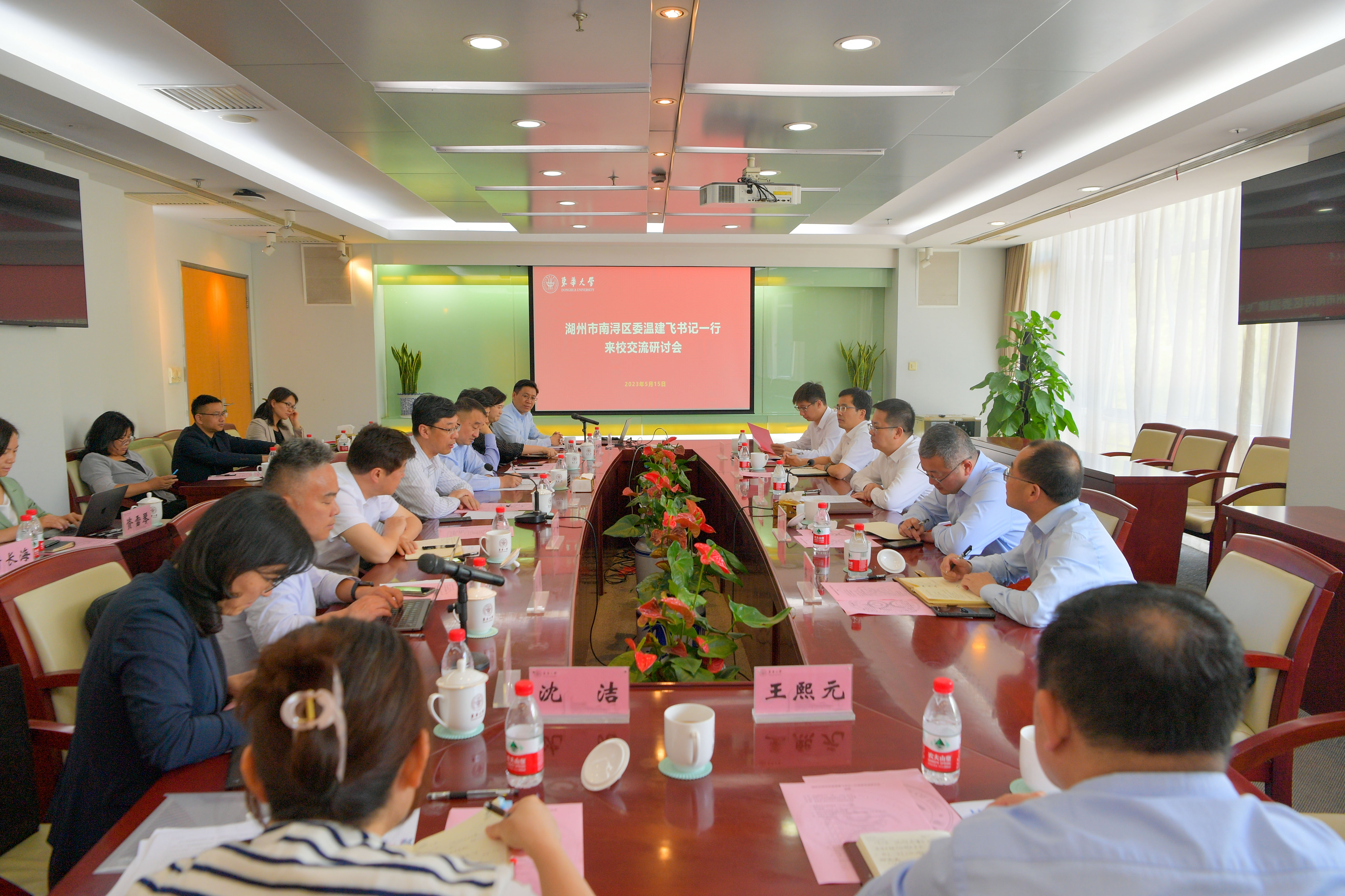 近日,湖州市南浔区委书记温建飞一行来校考察交流。党委书记刘承功,党委副书记、纪委书记王云骏出席交流座谈会,南浔区及Beat365官网相关单位负责人与会。Beat365官方网站党委书记韩哲宇主持会议。