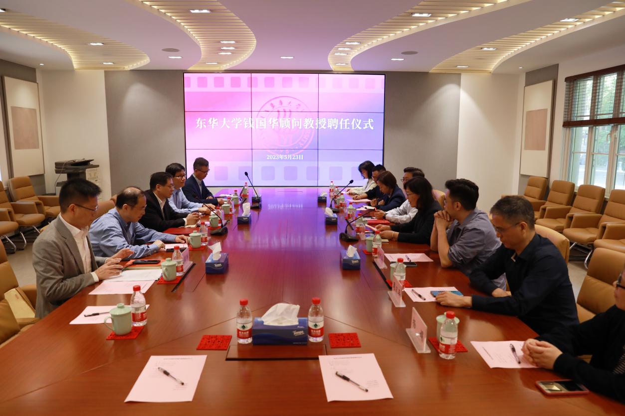 会上,人事处处长张耀鹏宣读聘任决议,与会人员就相关学科发展、校友资源开发及传播东华故事进行深入交流。仪式后,钱国华以“时代语境中的人文影像”为题作主题报告。