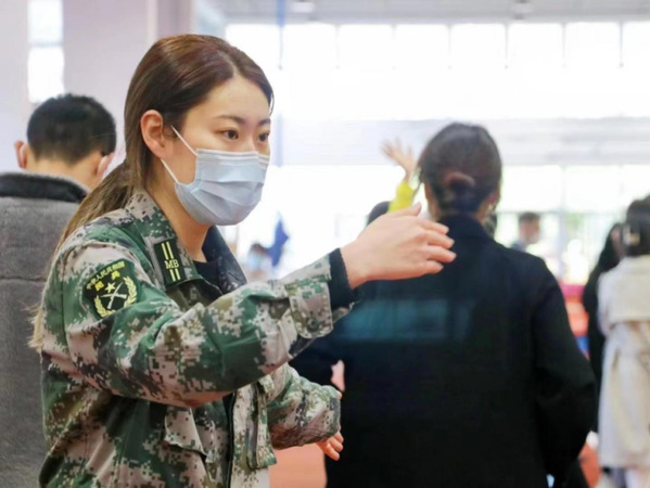 做为一名退役军人,更是一名党员,为人民服务,将奉献精神贯彻到底是她对自己坚定的要求。她多次作为负责人主动服务进博会、浦江论坛、第七次全国人口普查、上海市残疾人培训等大型活动,累计志愿服务时长超700小时;2020年疫情,她主动提出参与志愿工作,积极抗击疫情。今年在学校抗疫期间,3月初体育馆的核酸检测工作开始后,她再次穿上迷彩服冲锋在抗疫一线。驻楼期间,她第一时间穿上大白服,全力协助驻楼老师对12宿、21层近千名学生进行服务与管理,每天持续工作超过16小时。即便因做志愿者成为密接前去集中隔离,她也没有丝毫害怕和抱怨,平安回来后,她再次投身志愿服务工作。抗疫也是战役,她始终在践行“若有战,召必回”的诺言,于她而言,这是一场必须冲锋在前的“战斗”。