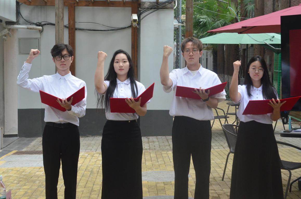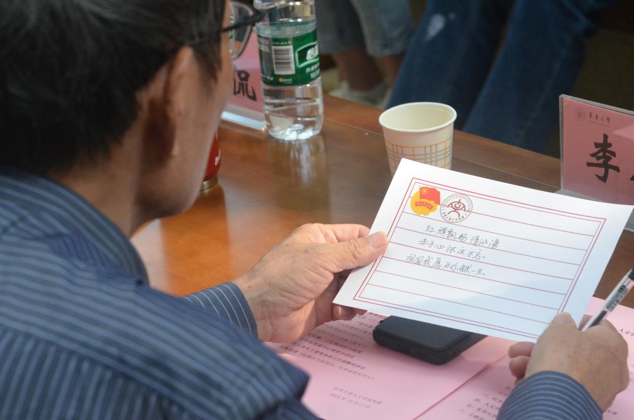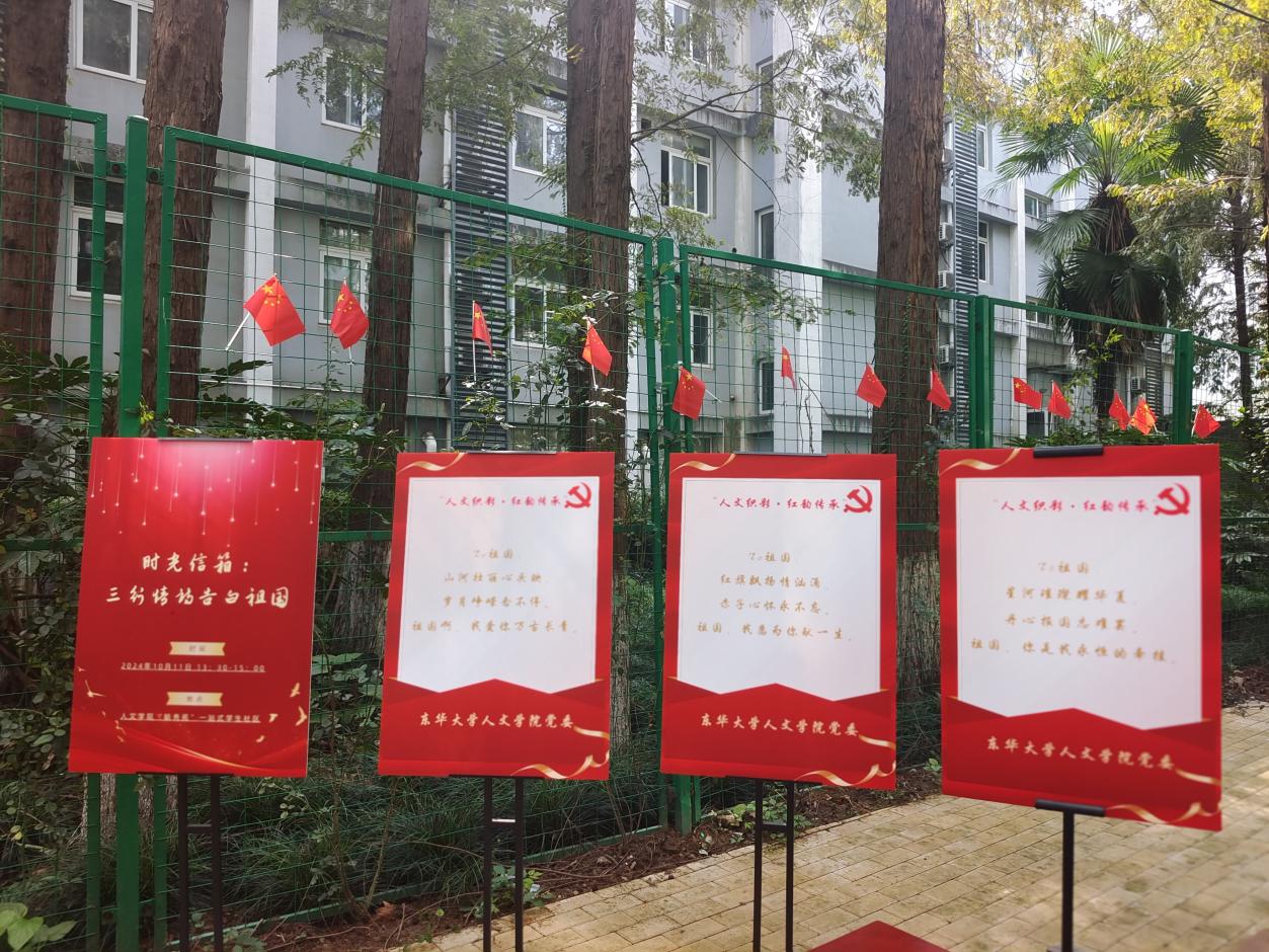 在“时光信箱:三行情诗告白祖国”环节,师生们纷纷在白底红线的信纸上写下自己对祖国的深情告白和美好祝愿,用青春告白祖国,用纸笔书写情怀。纸短情长,辞浅情深,短短三行,凝聚了人文青年对祖国的深深热爱。活动最后,学生代表带来《挺膺担当新使命,传承奋进东华人》主题宣讲,以生动的故事和鲜活的事例,激励全体师生以实际行动做国家富强、民族复兴的见证者、参与者和贡献者,在新时代新征程书写更加辉煌的新篇章!