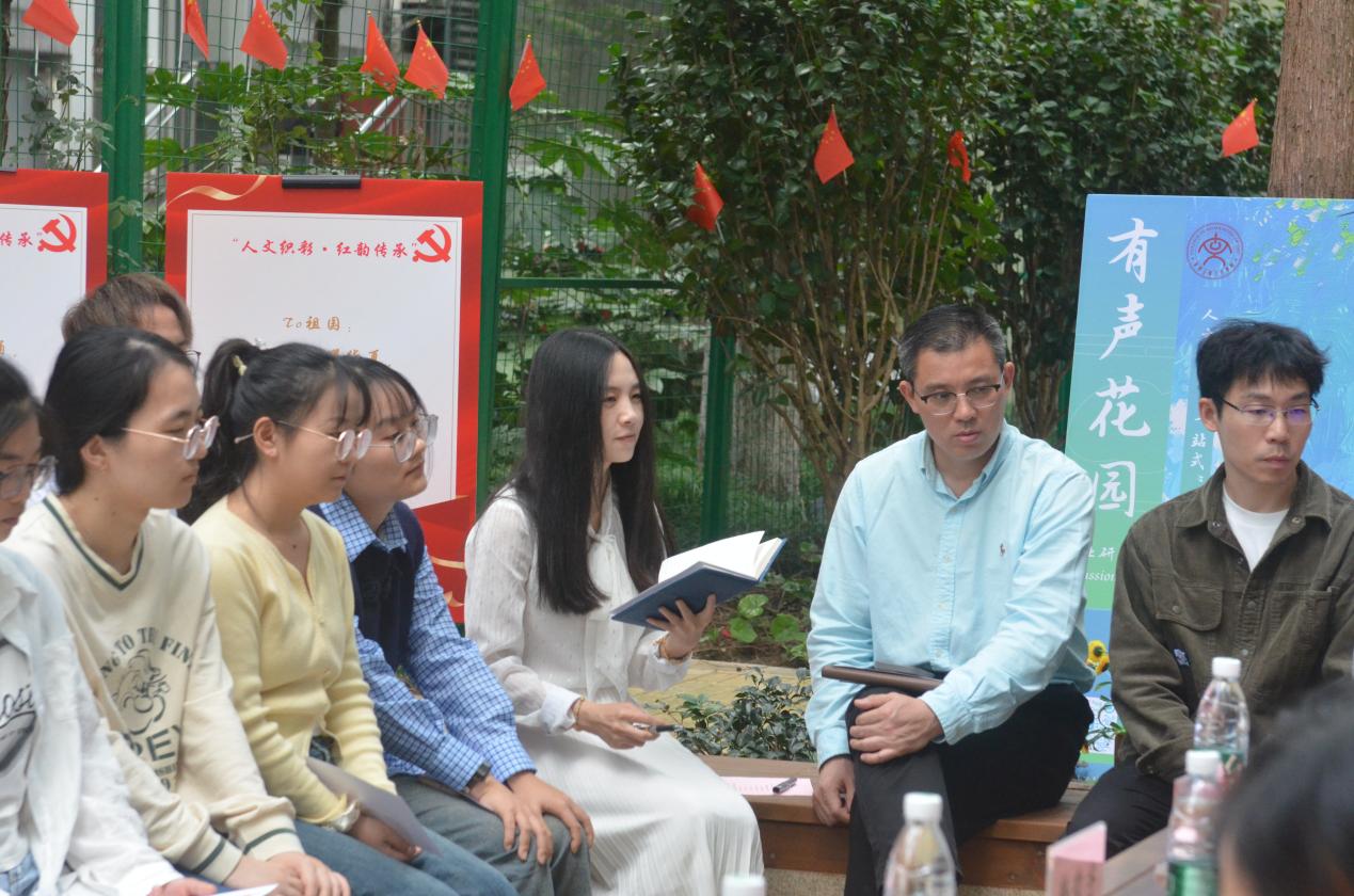座谈会现场,师生共同观看了红色影片《75年,我们正年轻》。影片以生动的影像和感人的叙述,展示了新中国成立以来的辉煌成就与人民的奋斗精神,进一步凝聚起奋进力量。观影结束后,“老中青”三代人齐聚一堂,与会师生结合自身学习工作实际,共话祖国发展。老同志代表贺善侃以“厚植爱国情怀”为题,鼓励在场师生强化爱国的责任意识、提升履职能力,胸怀强国之志、锤炼强国之技、勇建强国之功。教师代表唐丽萍表示,作为教师应当大力弘扬和践行人民教育家精神,牢记为党育人、为国育才的初心使命,培养具有社会责任感、创新精神和实践能力的新时代青年。学生党员代表叶雨鑫结合自己成长经历,表示当代青年应当肩负起国家的使命与责任,勇于承担建设美好未来的重任,为中国式现代化挺膺担当。