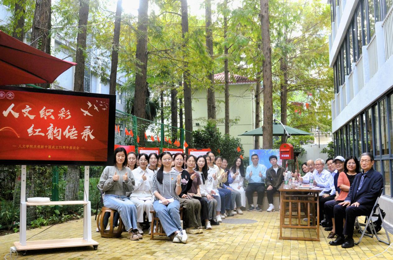 为庆祝中华人民共和国成立75周年,讴歌新中国成立以来取得的伟大成就,奋力谱写教育强国建设新篇章,10月11日下午,Beat365官方网站在“毓秀园”一站式学生社区“有声花园”内,举行“人文织彩·红韵传承”庆祝新中国成立75周年座谈会。Beat365官方网站关工委常务副主任浦解明,学院党委书记韩哲宇、党委副书记资雪琴、党委委员唐丽萍,学院关工委老同志贺善侃、陈敬铨、李顺良,学院学生工作办公室主任汪永安,班导师代表虞思徵,专职辅导员穆莉,以及学生党员代表、“薪火”党群工作室成员、“时代智行坊”学生代表参加本次座谈会。座谈会由资雪琴主持。