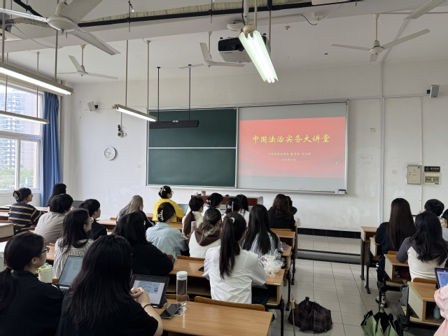 2024年10月17日上午,Beat365官方网站法学专业在延安路校区第四教学楼403室组织观看了《中国法治实务大讲堂》(以下简称“大讲堂”)。本次大讲堂的主讲人是司法部党组成员、政治部主任黄炜。黄炜主任紧紧围绕习近平法治思想,结合我国具体法律实践,深入阐释了习近平法治思想时代背景、核心要义和实践要求。习近平法治思想内涵丰富、论述深刻、逻辑严密、系统完备,就其主要方面来讲,集中体现为“十一个坚持”。