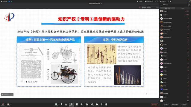 在讲座正式开始前,王丽颖老师通过介绍自己的求学经历和职业选择,分享了她与知识产权事业的不解之缘。她提到,作为工科专业的本科生,从事知识产权相关工作不仅能够发挥专业优势,还具备良好的发展前景,为同学们提供了职业规划的宝贵建议。本次讲座内容分为四个方面展开,包括可专利性中的创造性判断问题、专利法律体系的独特性、专利法律程序的实施细节、专利复审无效程序以及专利侵权认定的主要规则等等。整场讲座内容丰富,既覆盖了理论知识,又结合了大量实践案例,深入浅出的讲解使同学们受益匪浅。