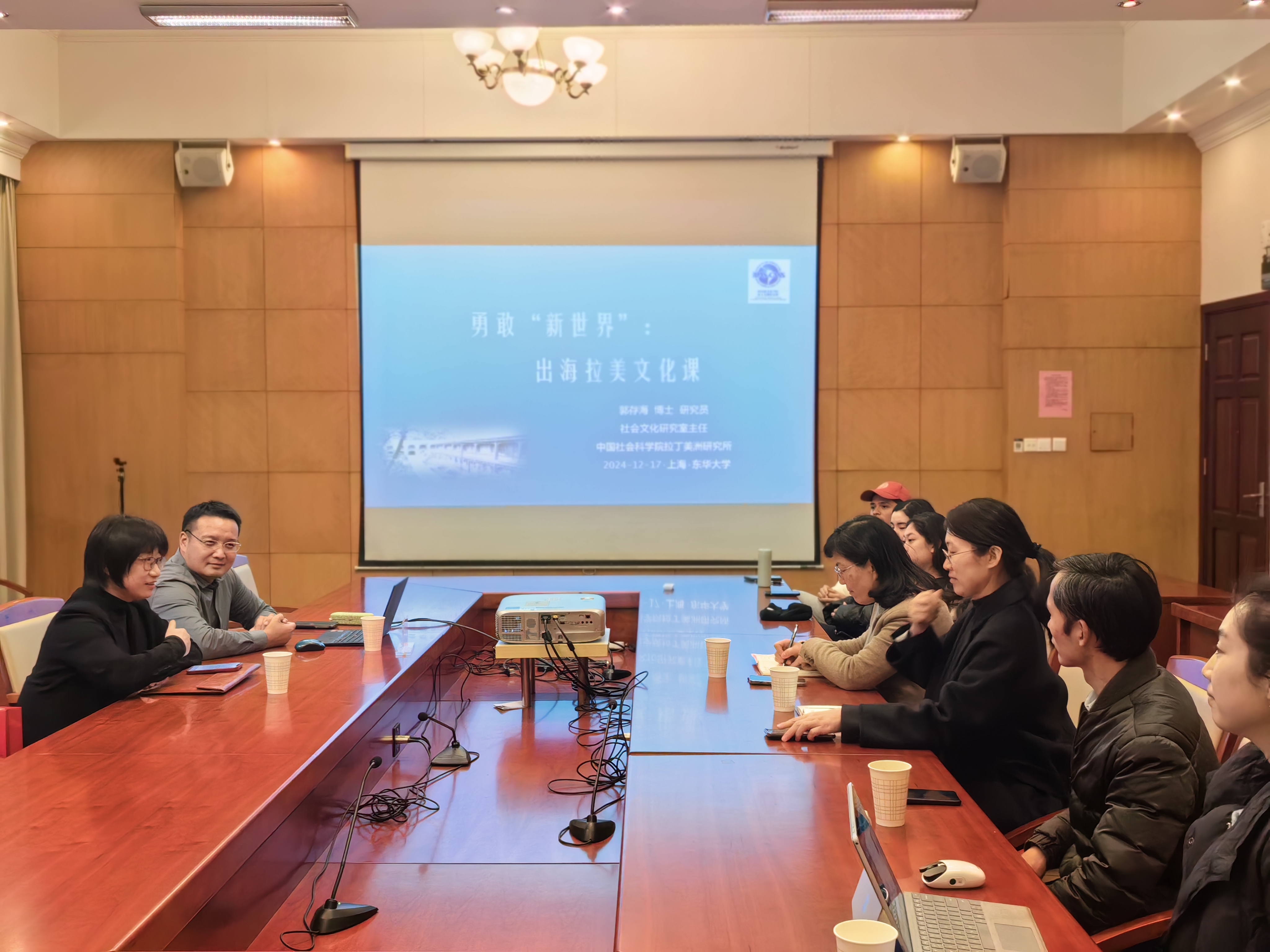 2024年12月17日,中国社会科学院拉丁美洲研究所社会文化室主任郭存海教授受邀来校讲座。本次讲座主题为“勇敢‘新世界’:出海拉美文化课”,由国际文化交流学院院长赵明炜主持。