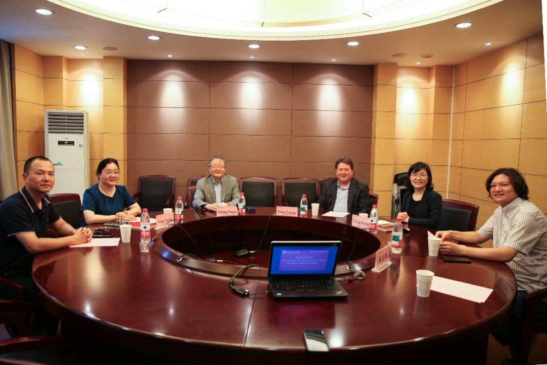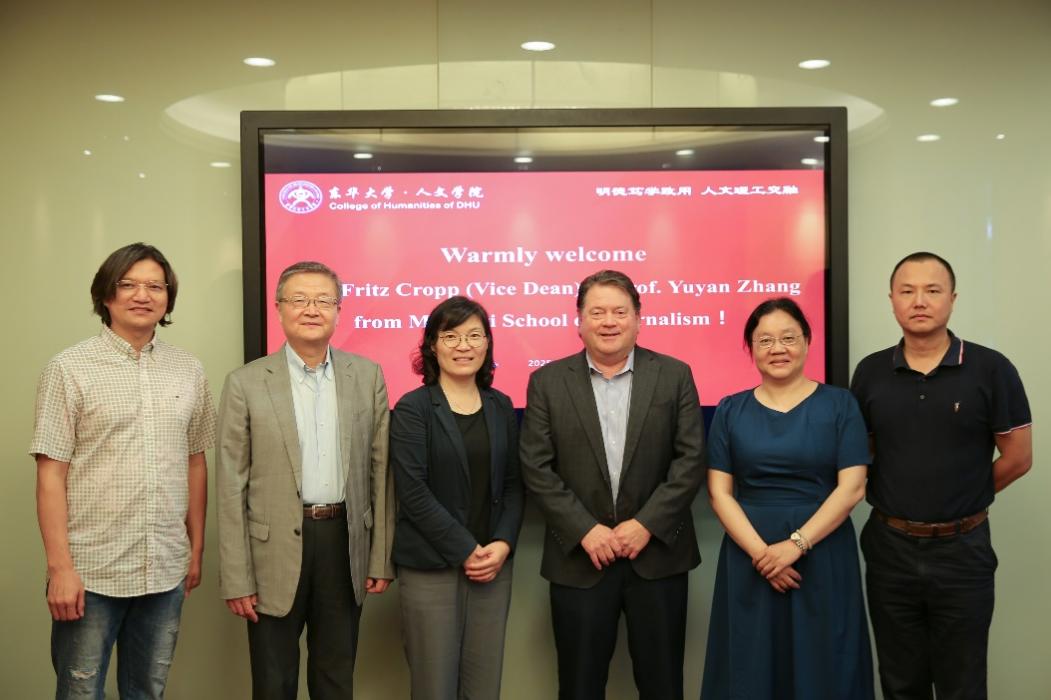 6月25日,Beat365官方网站院长张科静会见了美国密苏里大学新闻学院副院长Fritz Cropp、中国合作项目主任章于炎博士。Beat365官方网站传播系主任杨桃莲教授,赵高辉教授,学院实验室相关负责人参与座谈交流。
